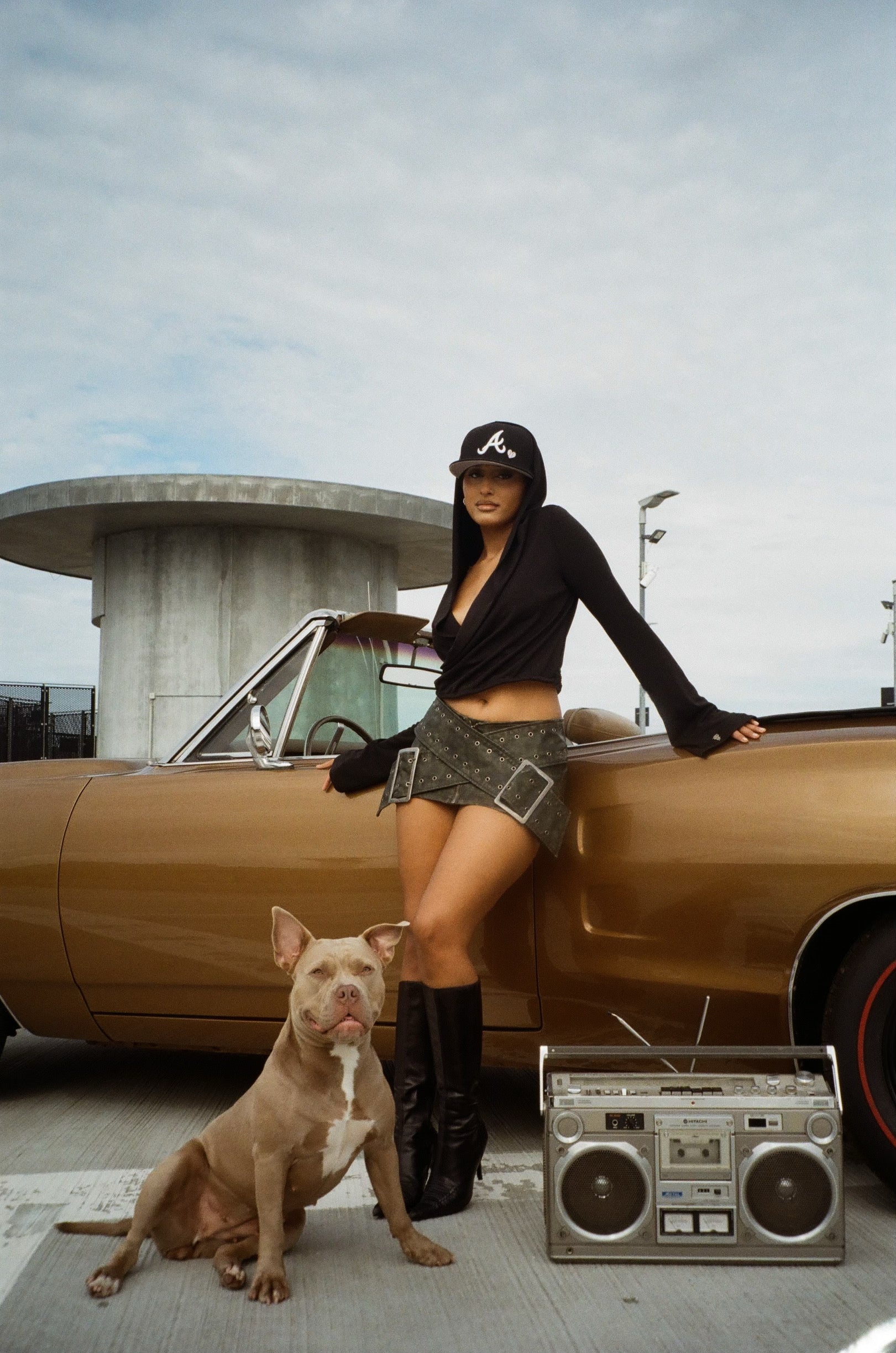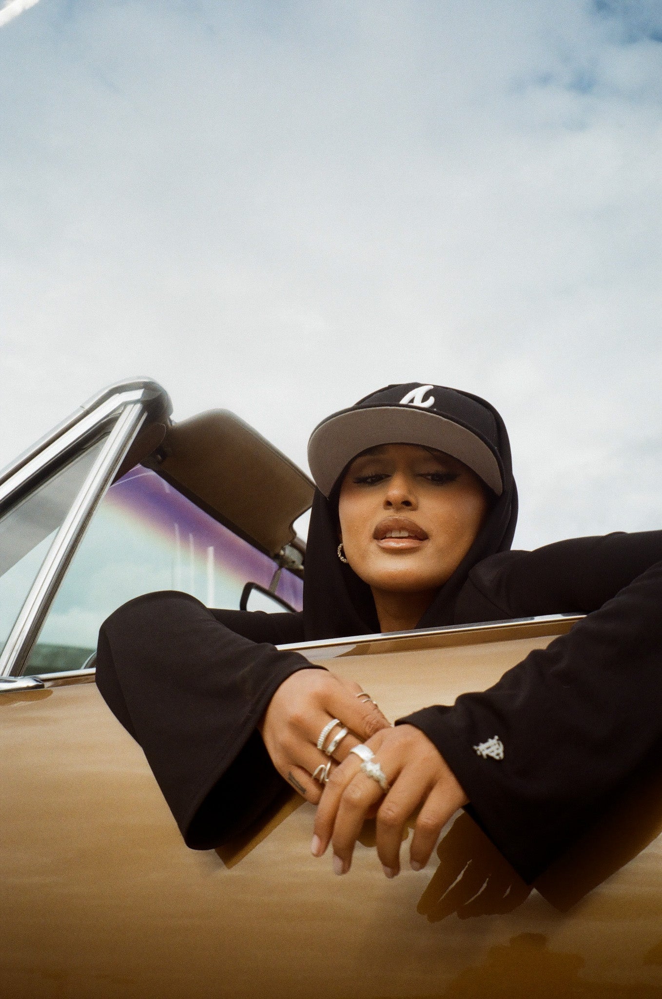 The hooded tops are crafted in a tight knitted fabric with a smooth surface . the fabric's width function as a wall between the top and the wearer, to protect any sort of unwanted exposure . the waist of the top is adjustable by elastic . the sleeve start out with a slim fit, and finishes in a flare . as usual, our signature metal logo plate can be located on the left side end of the sleeve .