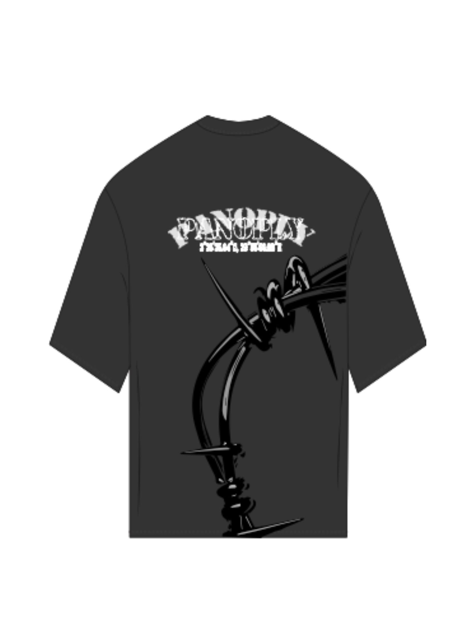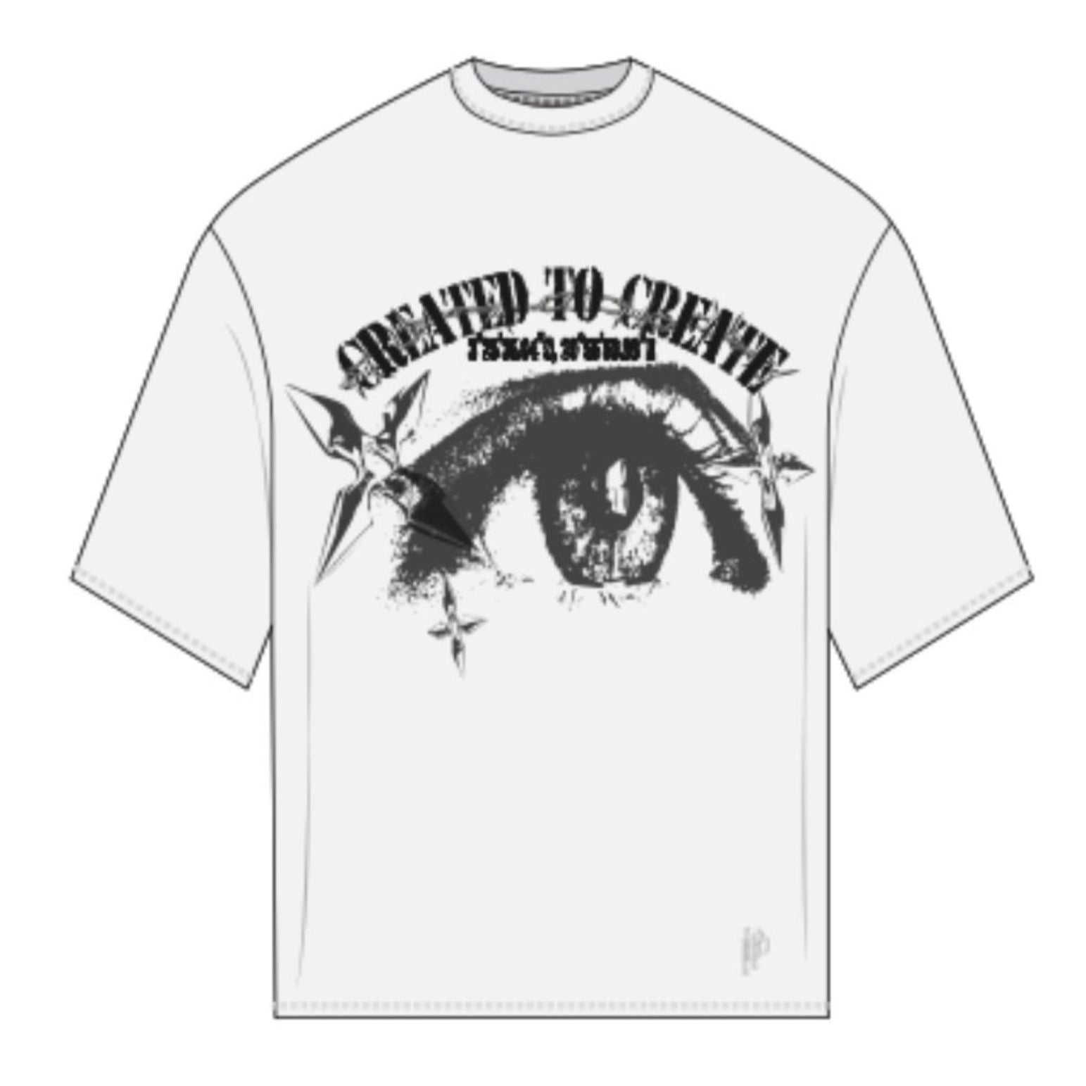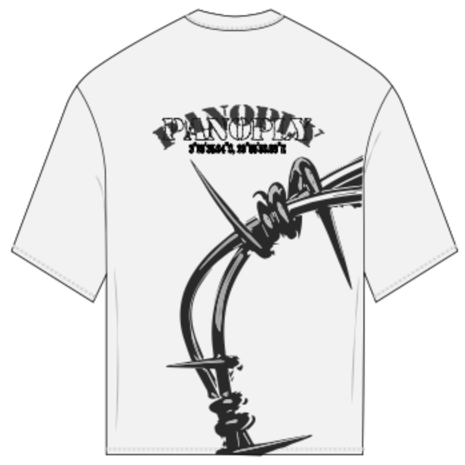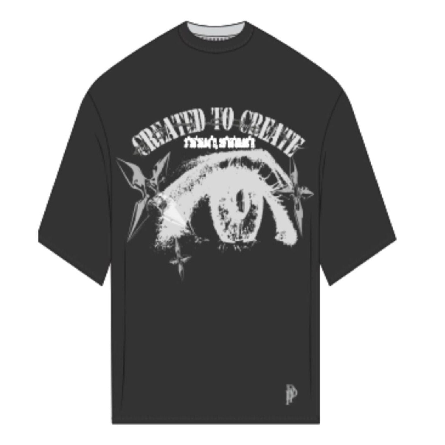 Created To Create; what we're all here for. We all create in different ways, and that is something we cherish at panoply . On the front you find the evil eye, together with one of our many quotes [CREATED TO CREATE] . On the back you find an art piece of a big barbed wire, that draw ties with the meaning of panoply . Read more under [ABOUT US] .