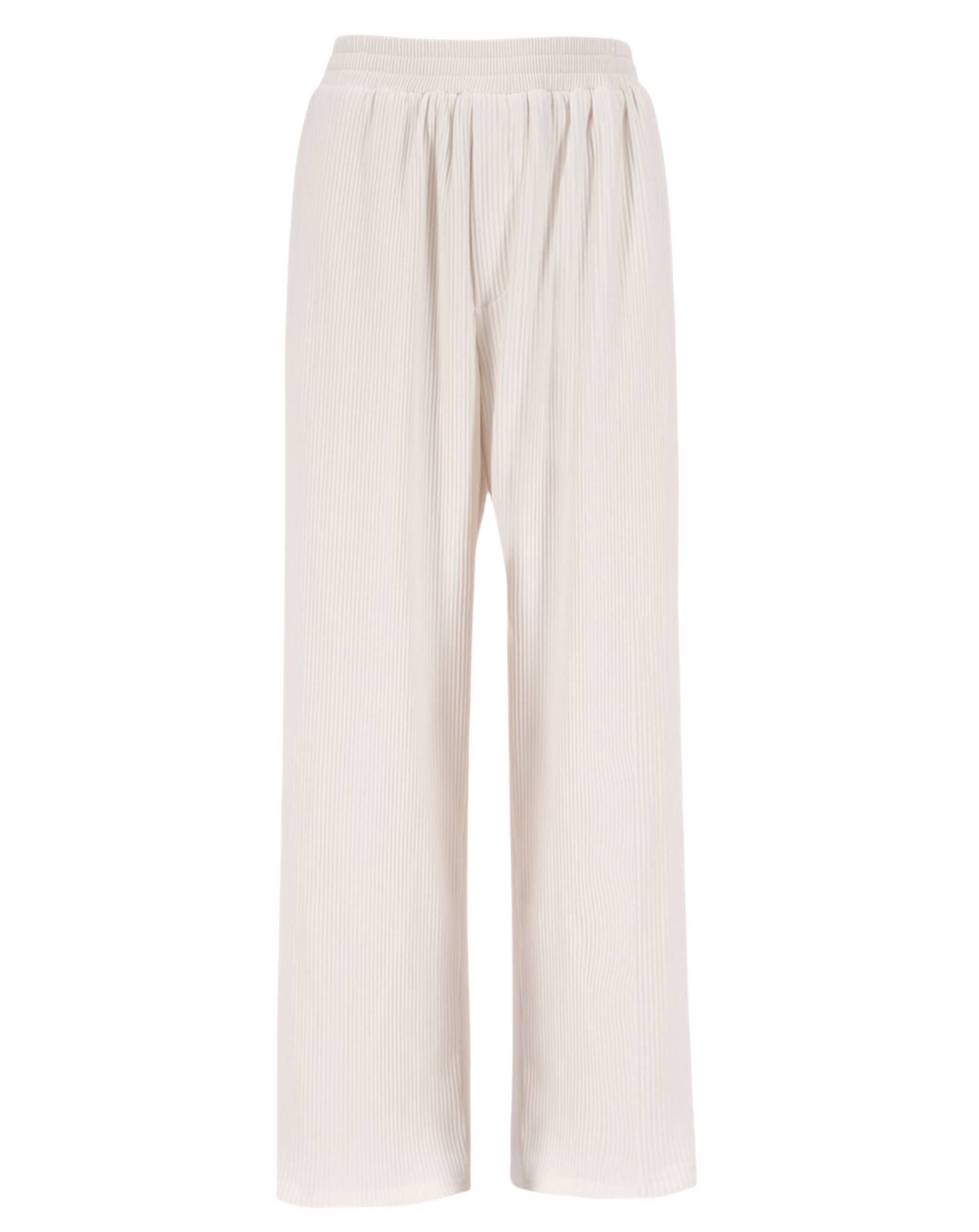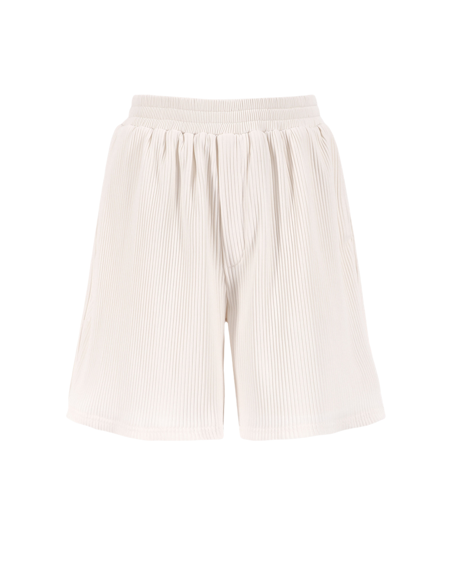 The full three piece pleated set consist of shirts, shorts and trousers . the pieces are crafted in a beautiful soft pleated fabric . all double lined for a stable wall between the underneath and the pleated pieces . the trousers have a wide fit with a flare finish . the shorts have a wide fit with a wide finish . they have a thick and wide waistband 3-timed-layered for stability and quality control . pockets are located on the sides, and our signature metal logo plate located on the left cheek . the metal logo plate is located on the bottom left on the shirt . the soft pleats are gentle to the skin : there are no irritation, allergic reactions or any kind of discomfort with the fabric .